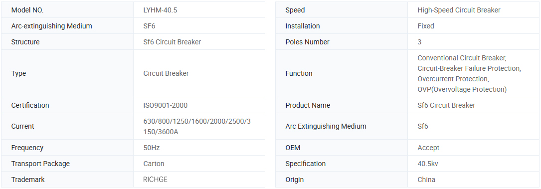 Série LYHM Série středního napětí plynového obvodu SF6 SF6 používají plyn na síru hexafluorid (SF6) jako obloukový hasicí a izolační médium. Tato vynikající charakteristika zajišťuje, že jistič má dlouhou elektrickou životnost. Nemá žádný dopad na šok, dielektrickou úroveň nebo tepelné napětí zařízení během provozu. Pól pólu jističe obvodu, tj. Sekce přerušovače, je proživa bez údržby. Životnost těsnění je v souladu s IEC 62271-100 a CEI17-1. Proces otevíracího/uzavření obvodových jističů Lyhm Série je prováděn pružinovými ovladači typu REH. Pohon a pól je upevněn na stejném kovovém rámu, který také slouží, když je vodicí zábradlí zavřený, je možné, že je zavřené, když jsou zavřené. a kompaktní konstrukce jističe zajišťuje, že je robustní a spolehlivý.