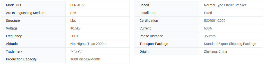 Přepínač zlomování FLN-40,5 kV Použijte plyn SF6 jako obloukový hasič a izolační médium. Existují tři pracovní stanice: otevírání, uzavření a uzemnění ve spínači. Má malý objem, instaluje snadno -použití, silné environmentální adaptabiliy a další charakteristický.
