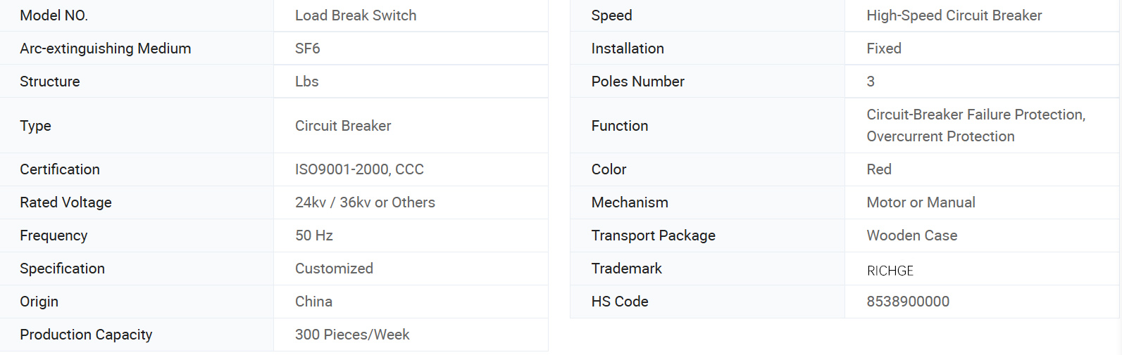 a jeho ukazatele výkonu splňují národní standardní GB/T3804-2017 "3,6 kV-40,5 kV vysokopěťové střídavé spínač AC", což je hlavní spínací prvek hlavní jednotky kruhu.