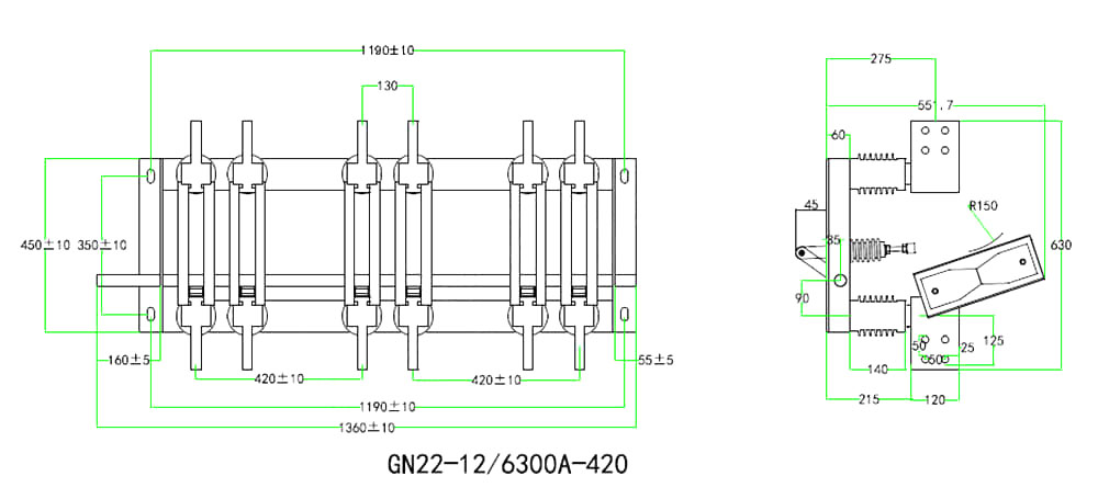 Tento produkt je vysoce proudovým izolačním spínačem se třífázovou společnou strukturou nože. Přijímá prototyp mechanického zamykání s dvoustupňovým působením uzavření a kontaktu, dosažení kontaktu bez opotřebení, malou provozní silou, vysokým kontaktním tlakem a dobrou dynamickou tepelnou stabilitou.