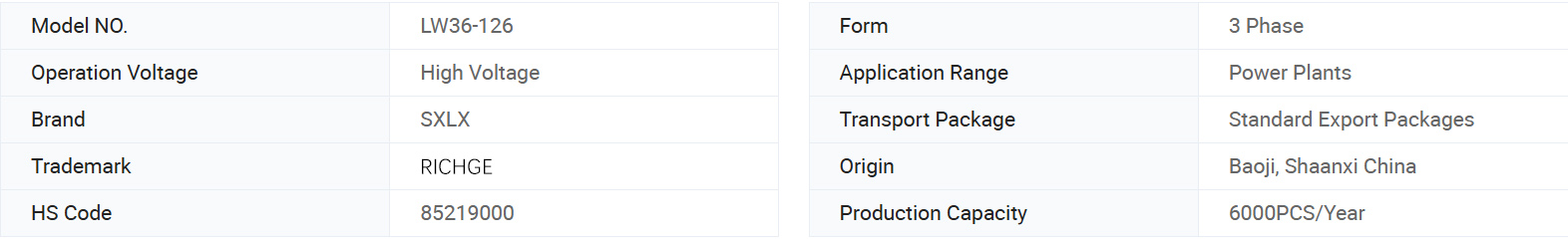 Tento produkt používá plyn SF6 jako obloukové hasičování a izolační médium. Je vybaven nejnovější technologií pro hasicí oblouk s vlastním potíží a má nový jarní mechanismus. LW36-126/3150-40 nabízí dlouhou elektrickou životnost, nízký provozní úsilí, nízký hluk a vysokou spolehlivost, což z něj činí nejspolehlivější volbu pro oblasti s vysokou nadmořskou výškou nebo napájecí systémy 132 kV. Může také nahradit importované produkty stejného typu.
