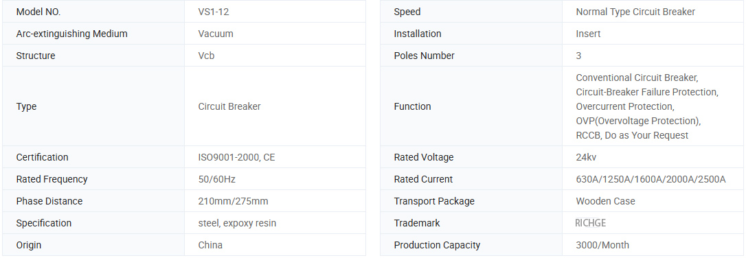 VS1-12 Vnitřní vysoký napěťový vakuový jistič je třífázový AC 50Hz, jmenovité napětí 12 kV vnitřního zařízení. Pro průmyslové a těžební podniky, elektrárny a rozvodny jako účely řízení a ochrany elektrických zařízení a pro častý provoz místa. Vzhledem k zvláštní nadřazenosti jističe vakuového obvodu, zejména pro aplikace, které vyžadují častý provoz při jmenovitém proudu nebo více otevřeném zkratovém přestávce. 1s je zvláště vhodné pro místo vyžadující časté operace.