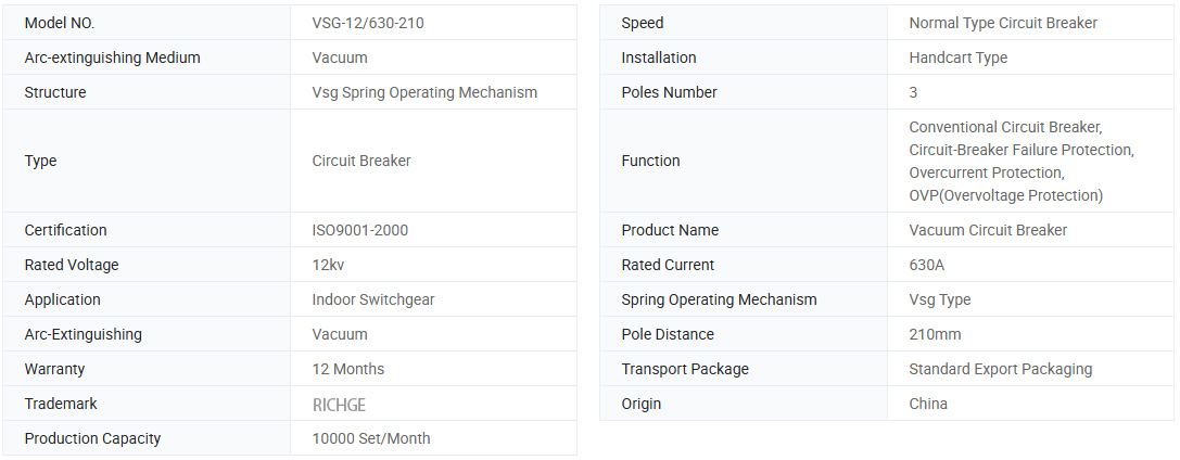 VSG-12 Vnitřní vysoký napěťový vakuový obvod (Abbr.: Circuit Breaker) je třífráza A.C. 50Hz vnitřní distribuce napájení vybaveného jmenovitým napětím 12 kV. Tento produkt je v souladu s GB1984-2003 (vysoký napětí A.C. jistič), JB3855-1996 (3,6-4,5 kV vnitřní a.c. Vysoký napěťový jistič), DL403-2000 (technické podmínky pro objednávání 12-40,5 kV s vysokým volným obvodovým obvodem) a IEC Standard A. Jistič obvodů). Může být použit pro ochranu a kontrolu zařízení v mřížkovém zařízení a dynamický design průmyslového a těžebního podniku. Je vhodný pro přepínání zatížení a častého provozu s různou vlastností a se schopností mnohokrát provozovat zkratovací proud.
