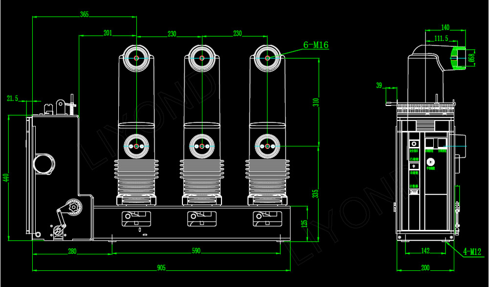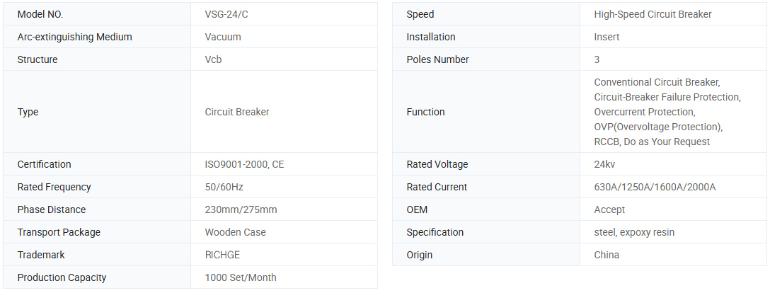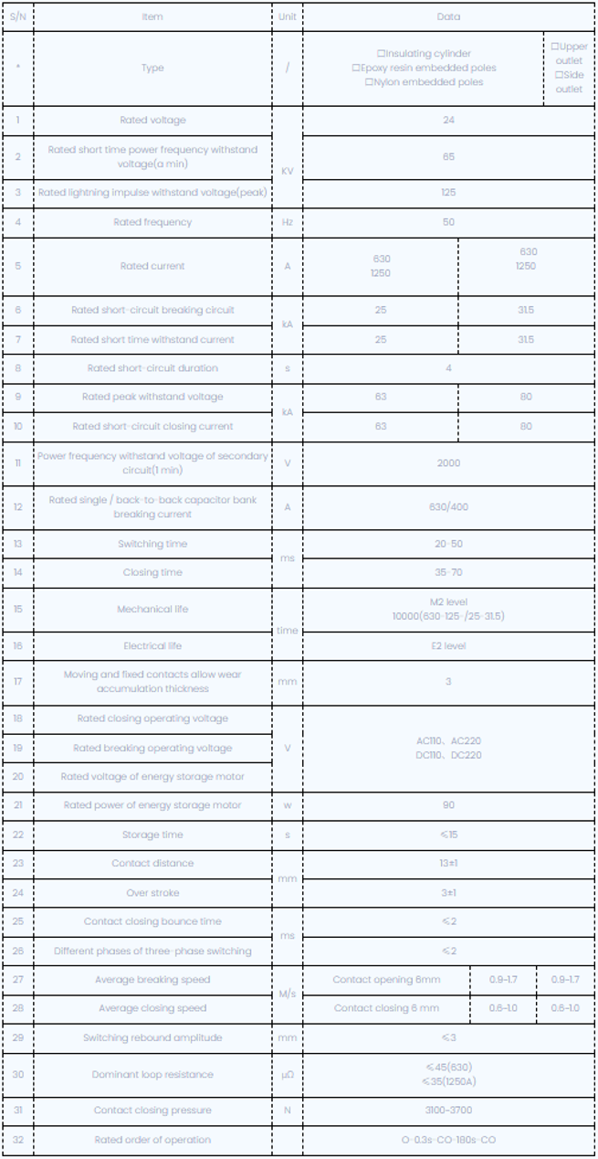 VSGG-24C řada namontovaného vakuového jističe na boku je pevně nainstalován a používá se hlavně pro pevný rozváděč. Jistič obvodu lze použít samostatně nebo pro napájení sítě, typ krabice nebo různé nestandardní systémy PowerSupply.