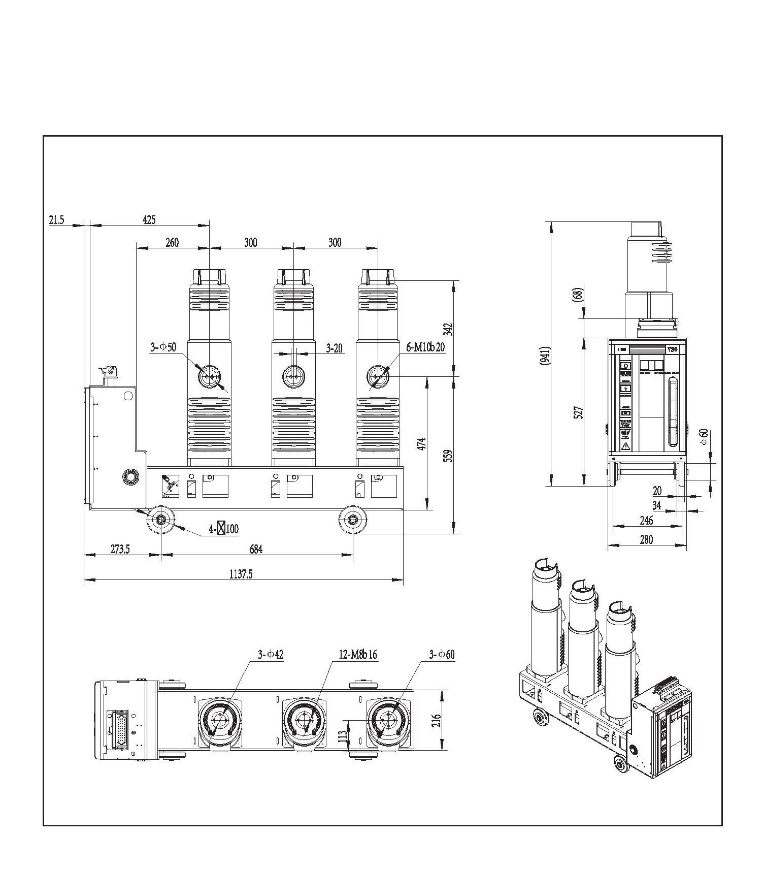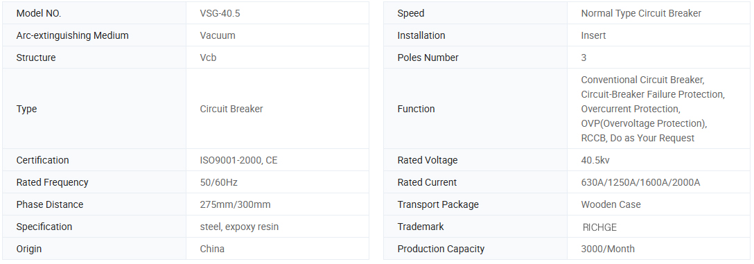 VSG-40,5c Series Vakuový jistič je nový typ třífázového 50Hz podle jedinečného konceptu designu a v kombinaci s poptávkou a vývojem na trhu, jmenovité napětí interiéru 40,5 kV, může být poskytováno průmyslovým a těžebním podnikům, elektrárny a rozvodně a je vhodný pro časté operace.