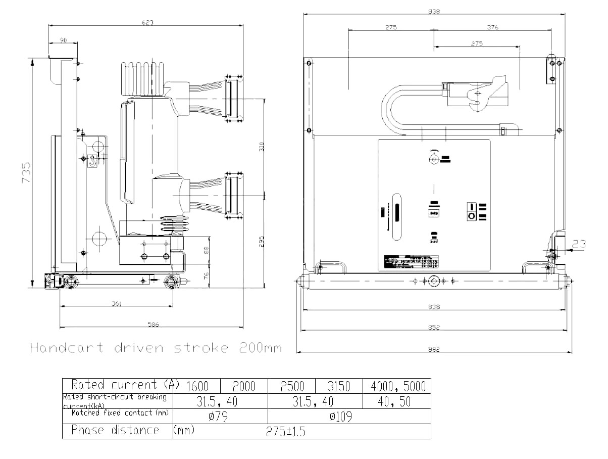 · Vakuový přerušení: Vakuový přerušení je umístěno v pevném sloupci, který se vyvíjí oblouk, navržený tak, aby chránil přerušovač před vnějšími vlivy, a zároveň zajišťuje důslednou izolační výkon a spolehlivost.